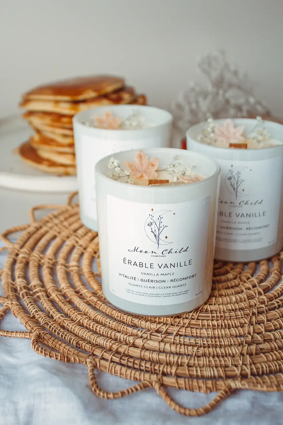 Bougie Cèdre, Vanille, Orchidée +Jaspe Dalmatien, Pierre de Soleil